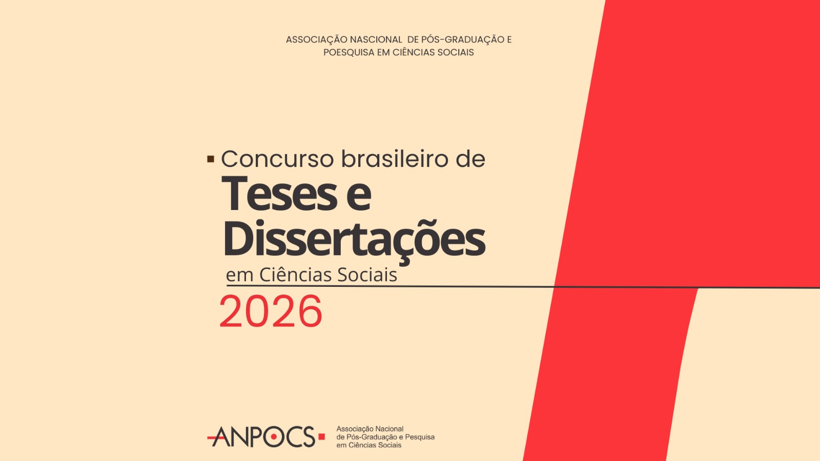 A Associação Nacional de Pós-Graduação e Pesquisa em Ciências Sociais anuncia a Edição 2026 do Concurso Brasileiro ANPOCS de Teses e Dissertações Universitárias em Ciências Sociais.